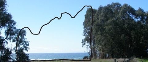 All that ocean and sky where the black outline is shows the view (from the Caspar Inn) that the Fire crews gave back to Caspar. Over the winter of 2010, most of the remaining "weeds" were felled, and the last of the trees will likely be gone by mid-summer 2010. Job well done! and THANK YOU to State Parks, CalFire, and the CDC crews.